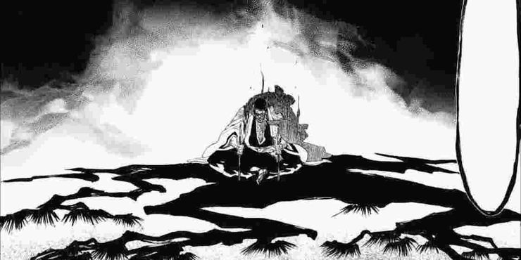Dicho esto, Kyoraku revela abiertamente su mecánica de Zanpakuto a Coyote Starrk y aun así derrota a la Primera Espada, lo que demuestra que su ascenso a Capitán en jefe es bien merecido. El Bankai de Katen Kyokotsu, Karamatsu Shinju tiene una enorme área de efecto, forzando una atmósfera de pesimismo sobre cualquier entidad viviente atrapada dentro de su espacio.
