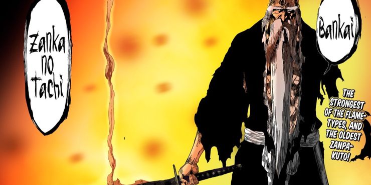 El Shikai de Yama vaporiza todo y a todos a su paso, y su Bankai, Zanka no Tachi, arde a la misma temperatura que el núcleo del sol: 27 millones de °F. Enemigos poderosos como Aizen e Yhwach están aterrorizados por la Zanpakuto del anciano, lo que explica por qué la neutralizan antes de enfrentarse a él.