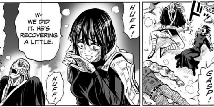 La batalla contra la Asociación de Monstruos continúa enfurecida y, a pesar de estar en la retaguardia durante la mayor parte, Blizzard ha resultado ser un activo esencial. Primero usó sus habilidades psíquicas para evitar que Genos se sobrecalentara y se volviera nuclear, lo que le permitió volver a la pelea en lugar de matar accidentalmente a sus camaradas. También se enfrentó a su hermana Tatsumaki, quien se estaba esforzando más allá del borde del agotamiento y trató de retenerla para que ella también pudiera curarla. Ahora, con un Tanktop Master muy destrozado que apenas se aferra a la vida después de que Genos lo rescató, las habilidades curativas de Blizzard parecían haber llegado a su límite.