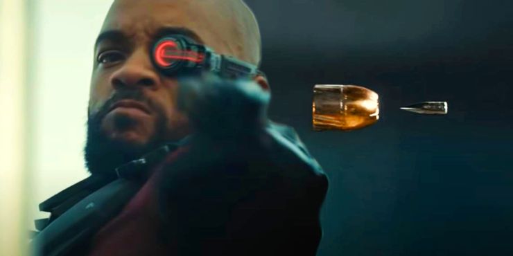 Las armas de largo alcance son el pan y la mantequilla de Bloodsport y Deadshot. En Escuadrón suicida, Deadshot se pone a prueba en Belle Reve con una sesión de práctica de tiro. Utiliza todas las armas disponibles y demuestra un dominio completo sobre todas ellas. Sin embargo, su arma favorita es su arma montada en la muñeca. 2016 de Ayer Escuadrón suicida características Deadshot cuenta con la ayuda de un parche en el ojo de alta tecnología que le permite apuntar automáticamente a sus oponentes, leer el entorno y hacer cálculos complejos en fracciones de segundo.