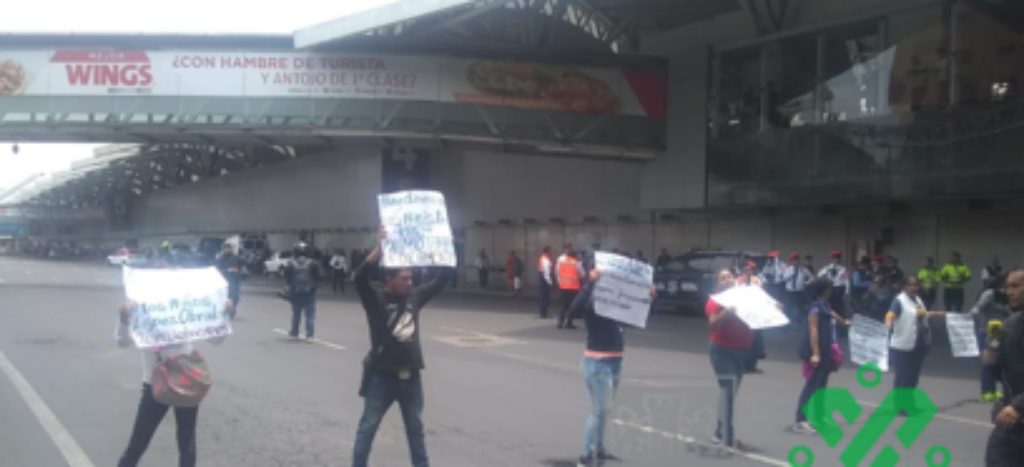 Los manifestantes bloquean las entradas a la altura de las puertas 3 y 4 de la Terminal 1 del Aeropuerto Internacional de la Ciudad de México.
