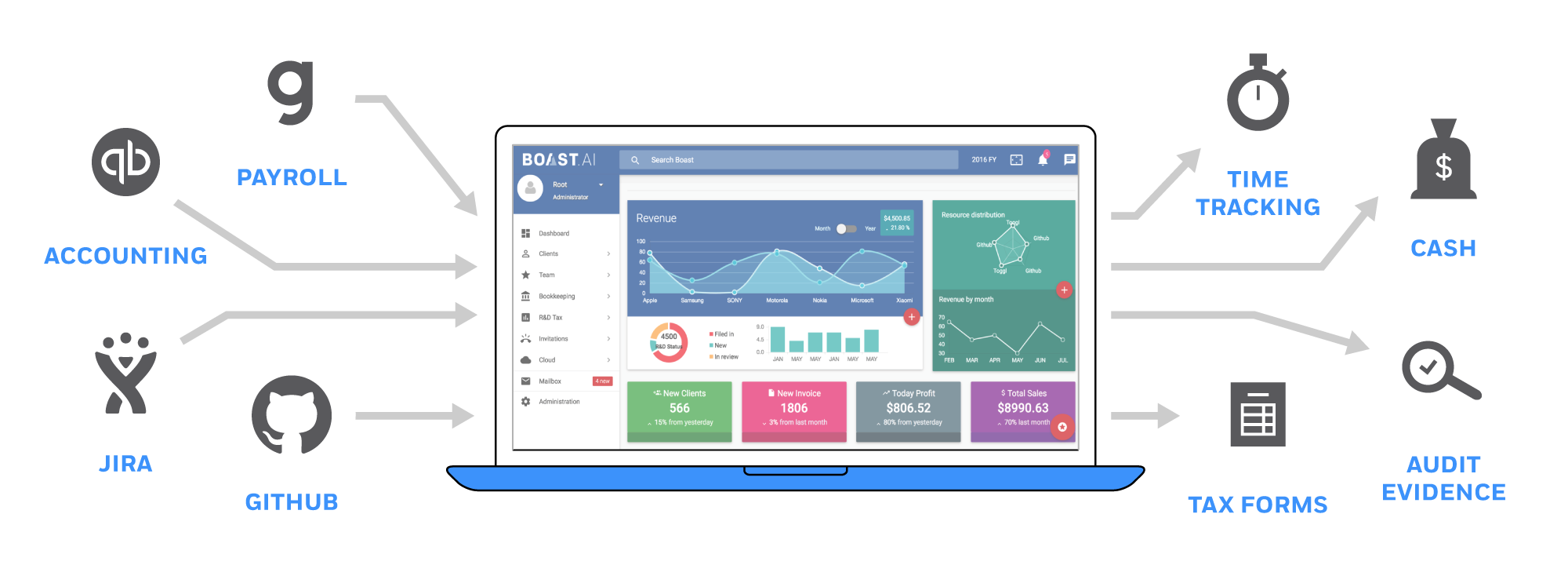 Entonces, después de hacer algo de ese trabajo manual, Boast ahora puede extraer datos automáticamente utilizando herramientas tecnológicas como JIRA y GitHub. y las herramientas financieras de una empresa como QuickBooks y (próximamente) ADP. Luego usa sus algoritmos para agrupar estos datos, calcular cuánto tiempo dedican los empleados a proyectos que calificarían para un crédito fiscal y automatizar el proceso de presentación de impuestos. Durante todo el proceso, y para interactuar con el gobierno si es necesario, la empresa mantiene a los humanos informados.