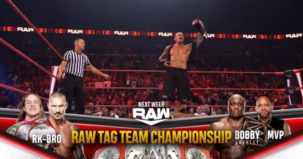 A pesar de ser maltratado por los imponentes Omos durante y después del partido, Lashley logró asegurar la victoria al inmovilizar a Styles con una lanza. El Campeón de la WWE y Porter ahora tienen una oportunidad y RK-Bro la próxima semana, seguido de Lashley vs.Orton por el título de la WWE en Reglas extremas.