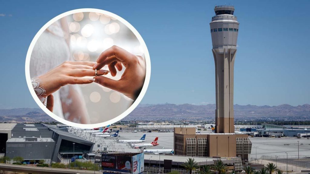 Así que para las personas que quieran decir “sí, acepto” poco después de recoger sus maletas en el aeropuerto McCarran de Las Vegas, solo necesitarán una identificación, $77 y por supuesto, la pareja.