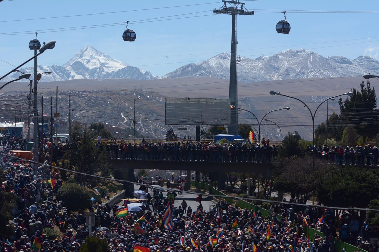 Cientos de protestantes de la ciudad de El Alto, vecina a La Paz, marcharon para pedir elecciones y también la renuncia de Jeanine Áñez a la Presidencia. Foto: Carlos Sánchez/ Página Siete