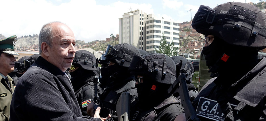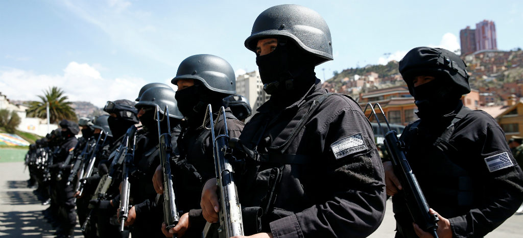 “Hoy día tenemos 70 valientes policías especialmente entrenados para combatir el terrorismo (…) Este grupo antiterrorista tiene como misión desarticular absolutamente todas las células terroristas que están amenazando a nuestra patria”, indicó el ministro de Gobierno de facto, Arturo Murillo, al presentar el cuerpo élite.