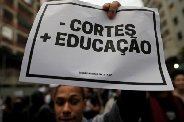Protestas en Sao Paulo, Brasil contra el recorte al gasto de educación.