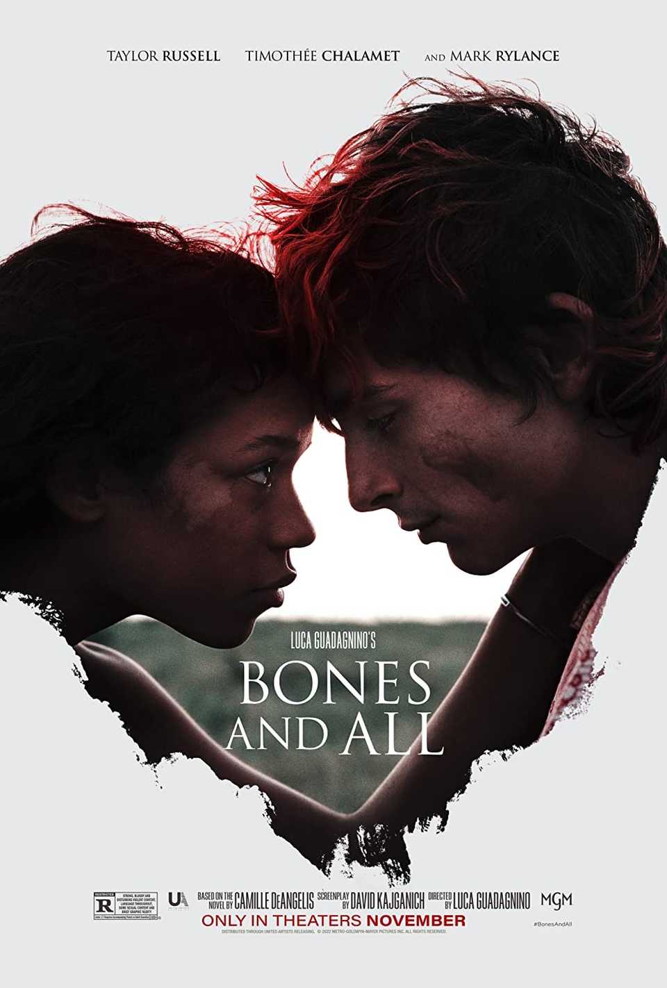 Huesos y todoEl elenco de All-Star Crea una película apasionante, desgarrador y aterradora, todo al mismo tiempo. Lee y Maren finalmente han creado una vida feliz juntos y se establecieron, cuando un caníbal amenazante y extraño Maren se conoció hace años llamado Sully Returns. Celoso y enojado porque se fue, Sully entra en su departamento y la amenaza. Lee llega a casa y protege a Maren, pero es apuñalado en el pulmón en el proceso. En su aliento moribundo, Lee le ruega a Maren que lo coma mientras ella llora e inicialmente se niega.