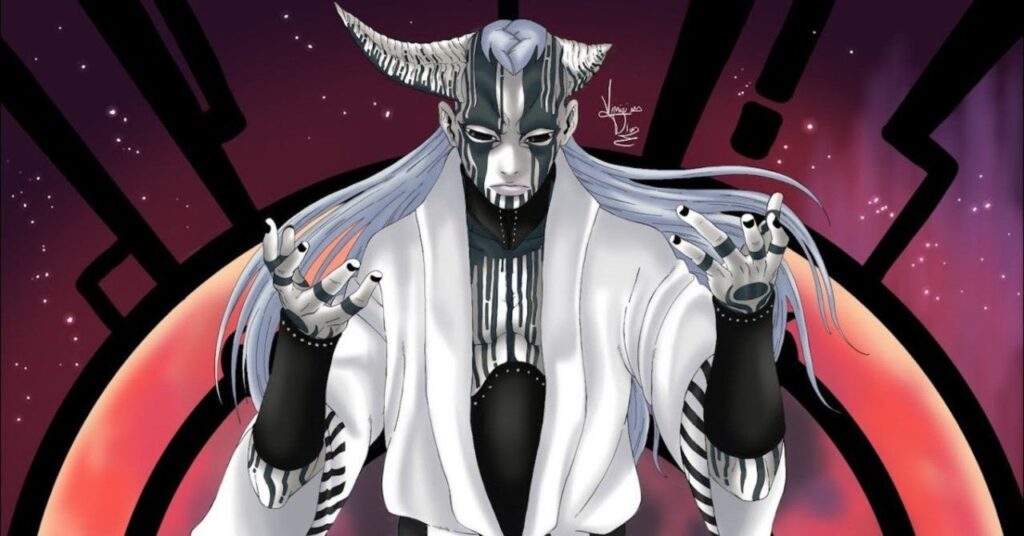 En Boruto Capítulo 47 Koji Kashin y su compañero de equipo del grupo Kara continúan su plan de deserción. Amado ha escapado a Konohagakure para informar a Naruto, Sasuke y compañía. sobre la verdadera naturaleza y conexión de Kara con el Otsutsuki; Koji Kashin se quedó en la sede de Kara para emboscar a Jigen en una batalla a muerte, para forzar un resultado fundamental: el surgimiento de la verdadera forma de Isshiki Otsutsuki.