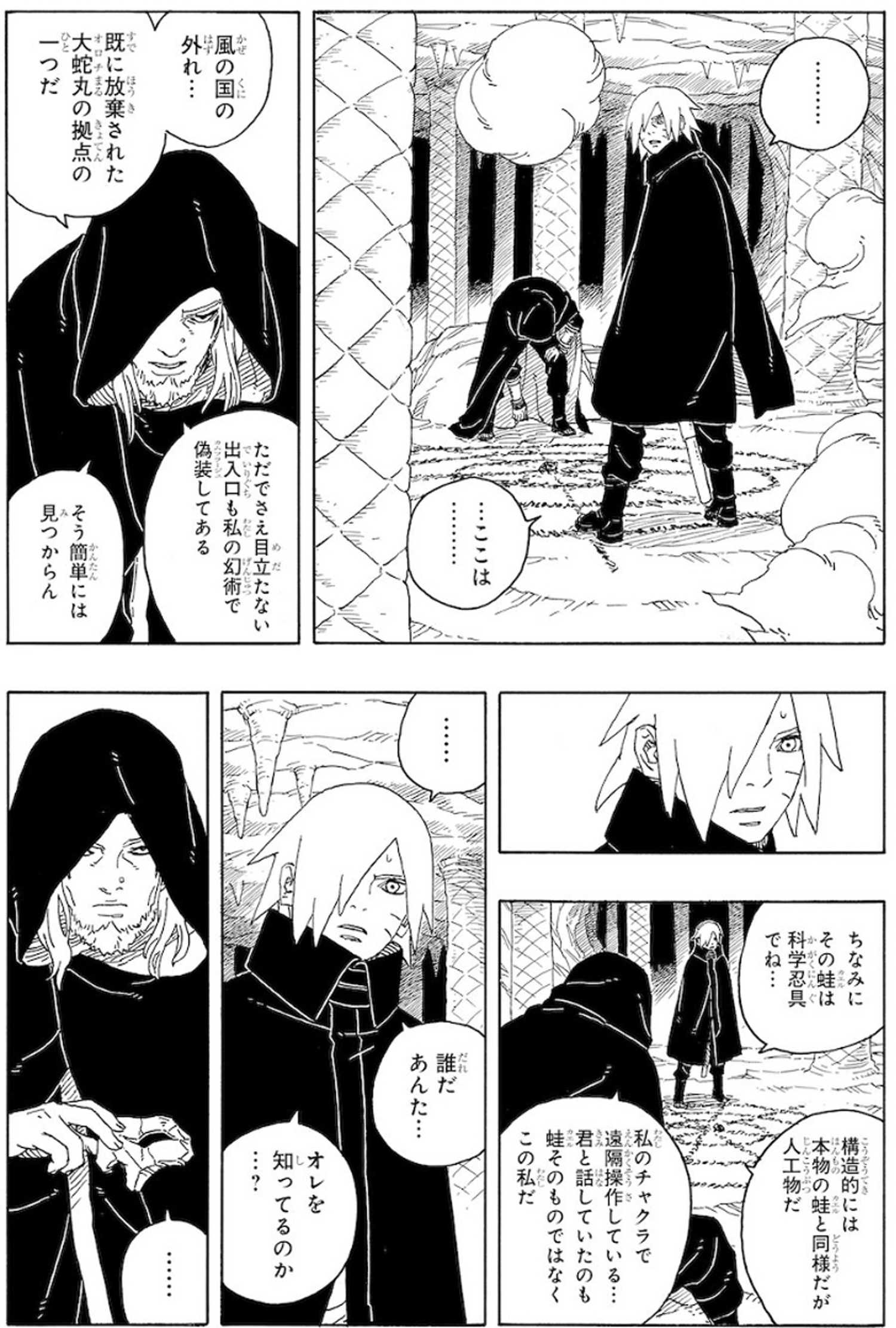 El avance muestra un flashback de Boruto y Kashin Koji dentro de la cueva de Orochimaru en el País del Viento. Según la conversación, esta es la primera vez que se encuentran y, como tal, Boruto se siente aprensivo y desconfiado. En medio de todo lo que sucede en la historia, este podría ser un respiro muy necesario para alejarse de la acción y arrojar luz sobre la nueva fuerza de Boruto.