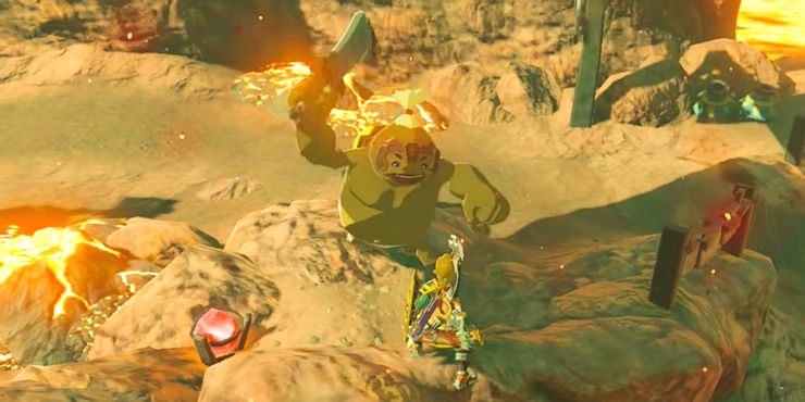 Una vez que Link ha eludido con éxito Aliento de lo salvajeSin embargo, en la atroz lava, descubrirá que el tesoro aún no se encuentra por ningún lado. Sin embargo, si el héroe de Hyrulian mira más de cerca, verá que una pared sobre una roca es débil, lo que significa que podría romperla con una de sus bombas remotas. Al hacerlo, se revela el cofre del tesoro que Dugby esperaba que Link encontrara después de descifrar sus indirectas pistas sobre las aguas termales de Goron.