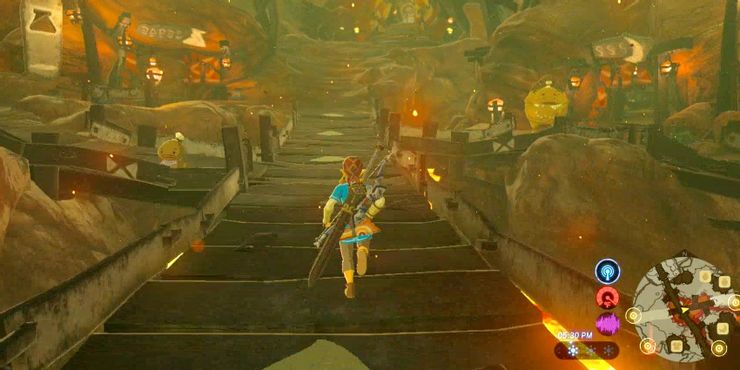 Una vez que Link ha eludido con éxito Aliento de lo salvajeSin embargo, en la atroz lava, descubrirá que el tesoro aún no se encuentra por ningún lado. Sin embargo, si el héroe de Hyrulian mira más de cerca, verá que una pared sobre una roca es débil, lo que significa que podría romperla con una de sus bombas remotas. Al hacerlo, se revela el cofre del tesoro que Dugby esperaba que Link encontrara después de descifrar sus indirectas pistas sobre las aguas termales de Goron.