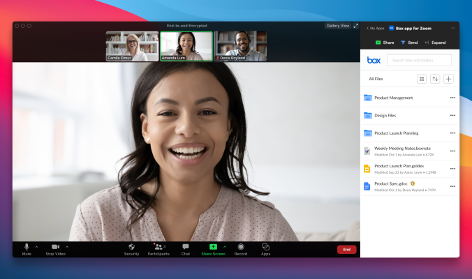 Mientras están en Zoom, los usuarios pueden acceder de forma segura y directa a Box para explorar, obtener una vista previa y compartir archivos desde Zoom, incluso si no están participando en una reunión activa. Esta nueva función sigue a un cuadro de integración de Zoom lanzado el año pasado con su sección “Aplicaciones recomendadas” que permite el acceso a Zoom desde el cuadro para que los flujos de trabajo no se interrumpan.