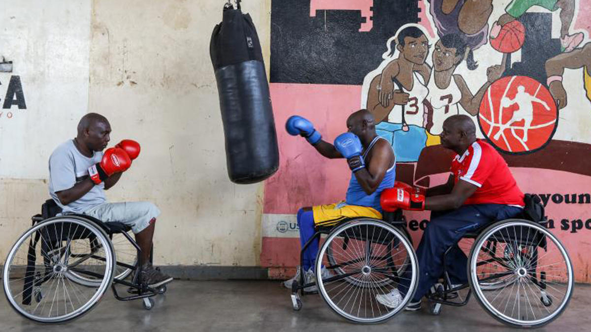 Cleantone, Karanja y George acaban de llegar a la cancha de baloncesto donde entrenan y ya están comprobando la presión de sus sillas de ruedas. En vez de jugar con un balón, se ponen los guantes de boxeo y comienzan a entrenar con la esperanza de representar a Kenia en las próximos Juegos Paralímpicos.