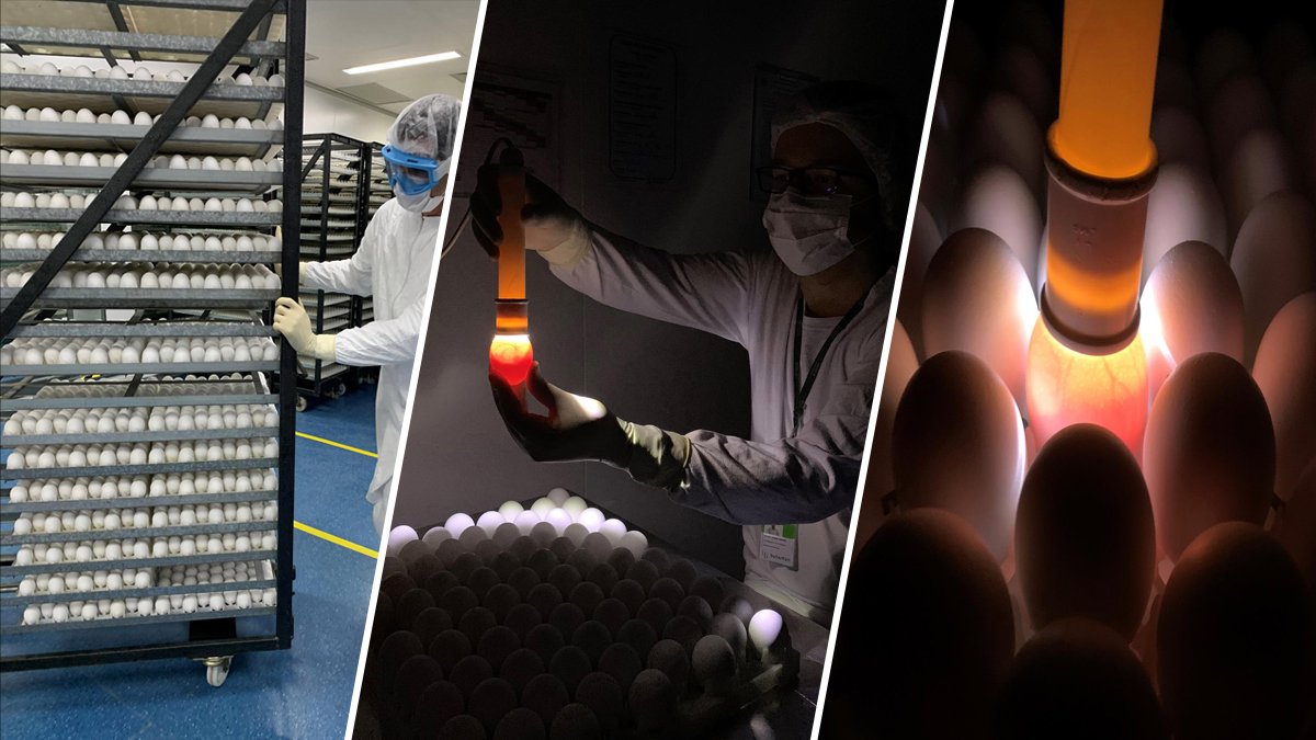 A este histórico laboratorio situado en Sao Paulo llegan cada día medio millón de huevos de gallina, los cuales son inspeccionados al detalle en un proceso llamado “ovoscopía” y en el que se evalúa la calidad de los embriones a través de la cáscara con la ayuda de una pequeña linterna.