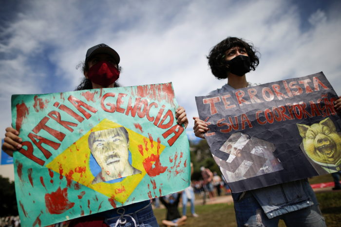 Los brasileños organizaron protestas contra el manejo del presidente Jair Bolsonaro de la pandemia de COVID-19 en al menos 16 ciudades de todo el país el sábado, con carteles como “Fuera Bolsonaro” y “Juicio político ahora”.