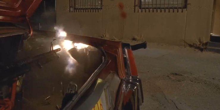 La torreta atraviesa tanto el coche como las paredes del recinto, y la tripulación de Jack es diezmada por los disparos. Cazadores de mitos De hecho demostró que esto era posible, pero en el gran esquema de Breaking Bad, sigue siendo una de las cosas más locas y extravagantes que vieron los espectadores.