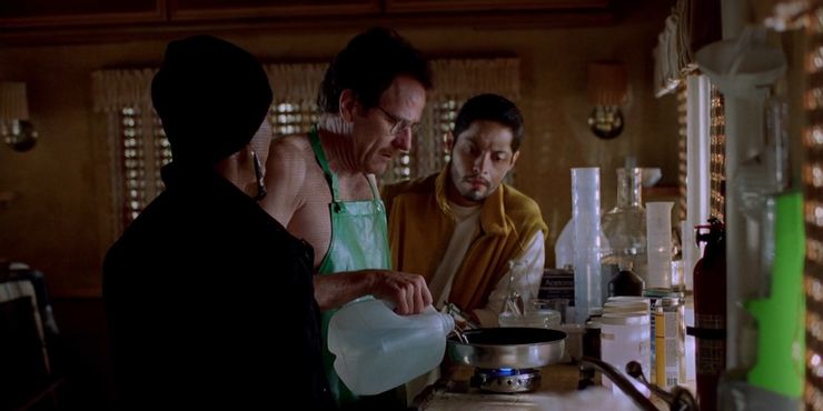 En la temporada 1, Walt roba ácido fluorhídrico del laboratorio de la escuela con fines no relacionados con la cocina. Tiene la intención de usarlo para deshacerse del cuerpo de la mano derecha de Krazy-8 y ex compañero de Jesse, Emiliano Koyama.
