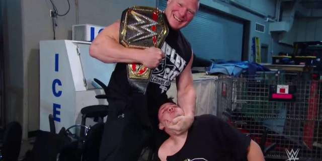 Fueron al comercial y cuando volvieron. Velásquez y Rey estaban detrás del escenario con Dominick cuando lo tendieron en la mesa de un entrenador con una camiseta rasgada. En ese momento, Lesnar entró en escena y atacó a todos con un bote de basura.