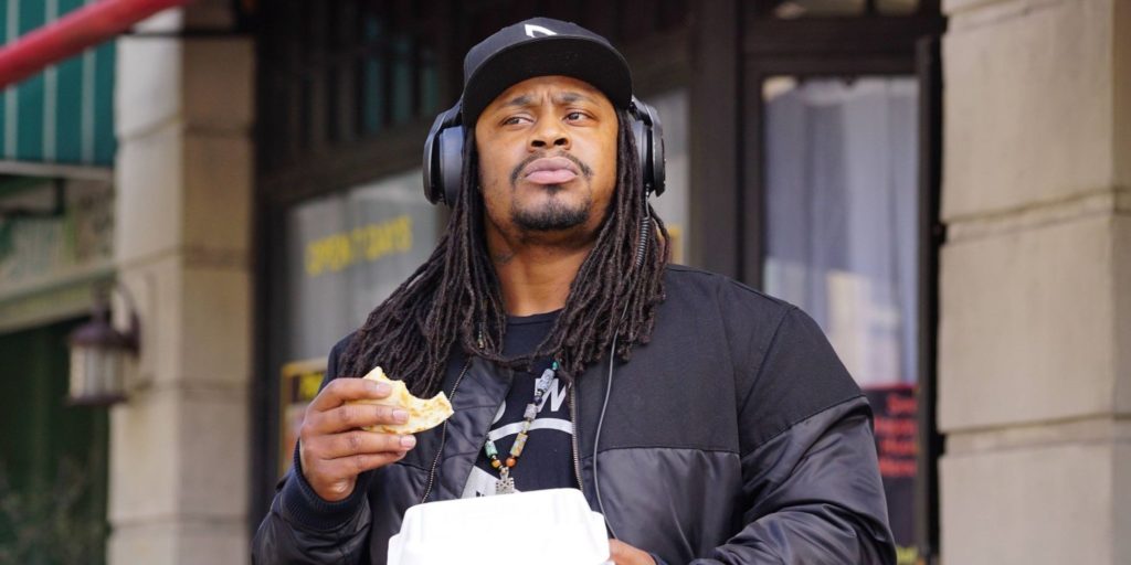Corte a la siguiente escena, donde Marshawn Lynch habla enérgicamente de todo, desde el pico de gallo que estaba comiendo cuando ocurrió el escape, hasta el momento en que se quedó despierto hasta tarde cuando era un niño tratando de atrapar a Santa Claus. Después de soportar media hora de conversación sin parar, Lynch les revela que en realidad no vio nada que pudiera ayudar. Lynch tiene aproximadamente un minuto de tiempo de pantalla en el episodio, pero Brooklyn nueve y nueve demostró que es un actor cómico natural.