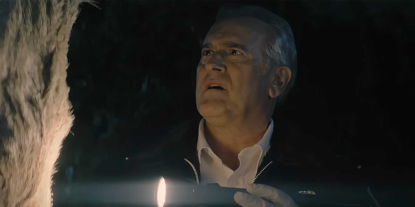 Bruce Campbell es el jefe de policía de un pequeño pueblo donde el mal y la locura empiezan a echar raíces. ¡Histeria!. Podría decirse que Campbell es mejor conocido por su trabajo en el género de terror como Ash Williams en Sam Raimi. Mal muerto franquicia, habiendo interpretado al personaje en tres películas, un cameo post-créditos y la continuación del programa de televisión de tres temporadas, Ash contra Evil Dead. Más allá de la franquicia, Campbell también ha sido aclamado por su trabajo en la comedia de terror. Bubba Ho-Tepel espectáculo clásico de culto Las aventuras del condado de Brisco Jr. y como una de las principales estrellas de la comedia de espías. Aviso de quema a lo largo de sus siete temporadas y la película derivada de la precuela.