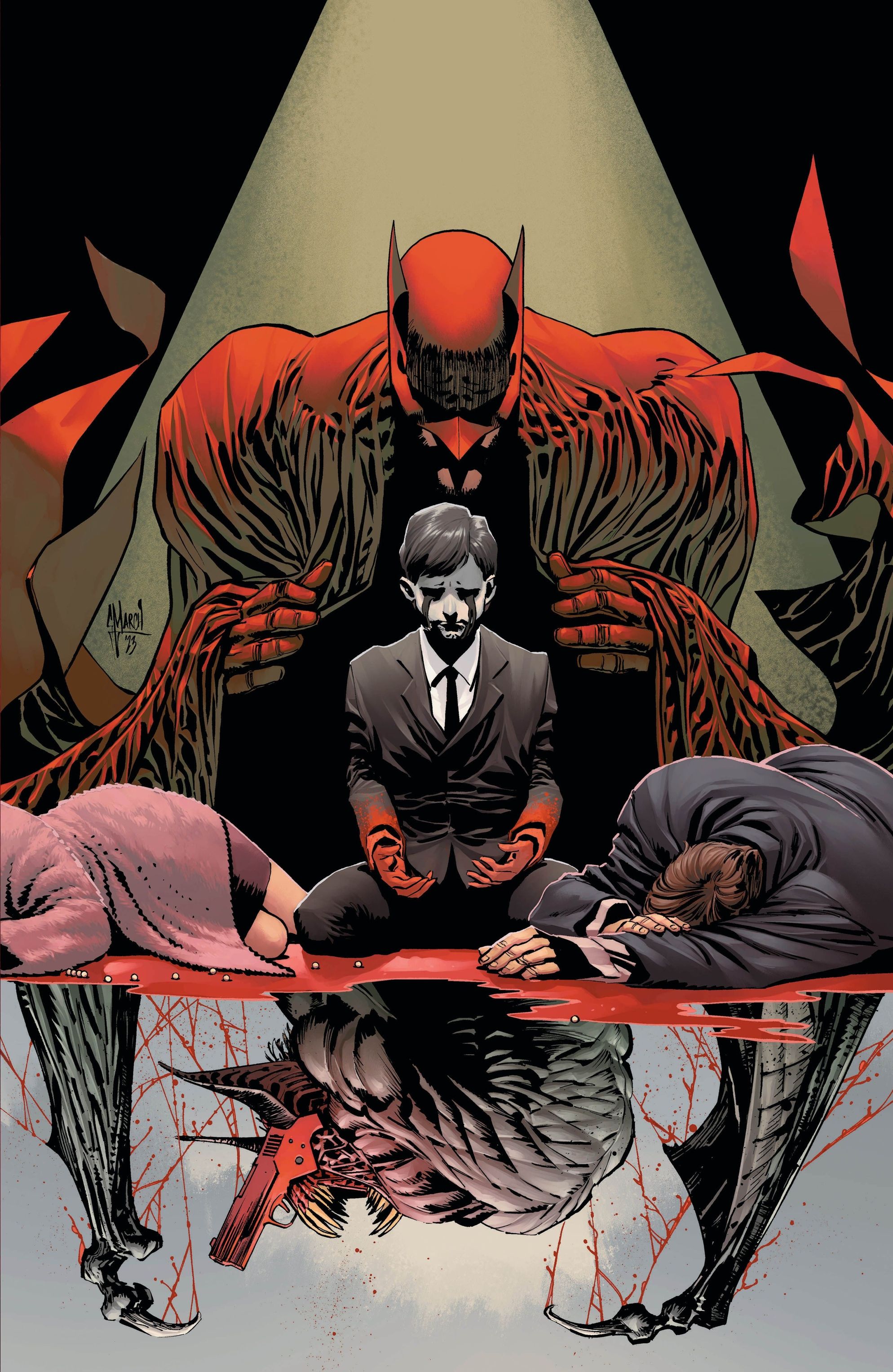 Solía hacer esta broma: Hemos visto morir a diferentes versiones de los padres de Bruce Wayne tantas veces que quería jugar con esa idea. Bruce también lo ha visto muchas veces en este punto… Con Bruce, el arte muestra el versión de él cuando era niño. Luego tenemos los murciélagos saliendo de su boca y la cabeza del arma. Así que entramos e intentamos algo diferente con él… Verás en el primer número que se trataba menos de decir: ‘Aquí hay otra cosa que le teme a Bruce’… Bruce sabe a lo que le teme, entonces se trata más de obligarlo a mirar esas cosas desde diferentes puntos de vista.