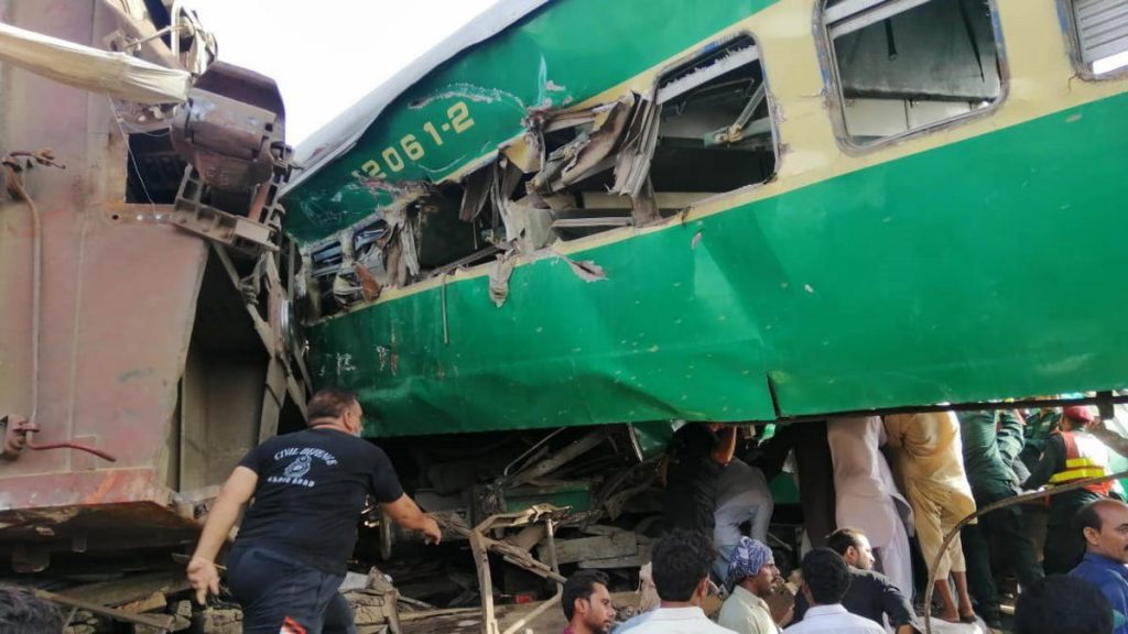 El accidente se produjo en torno a las 4 a.m. hora local en la estación de Walhar, cuando un tren de pasajeros entró en una vía de servicio y chocó con un ferrocarril de mercancías estacionado, dijo el portavoz de Ministerio de Ferrocarriles, Ali Nawaz Malik.