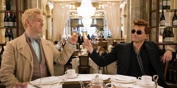 En Buenos presagios, El cielo y el infierno están a punto de participar en la guerra para poner fin a todas las guerras, y todo lo que se requiere es que el demonio Crowley (David Tennant) y el ángel Aziraphale (Michael Sheen) se aseguren de que el Anticristo esté en el lugar correcto a la derecha. hora. Sin embargo, según el destino, esto no va según el plan, y los dos deciden tomar el asunto en sus propias manos para evitar que ocurra el Apocalipsis. Al final, los dos finalmente tienen éxito y brindan por el mundo. Sin embargo, a pesar de que se hizo un lazo ordenado alrededor de la historia de Gaiman, hay indicios en el final de que el Apocalipsis fue solo el comienzo.