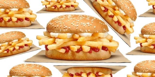 Si alguna vez has querido una hamburguesa con papas fritas, estás de suerte, eso es exactamente lo que Burger King tiene en sus tiendas en Nueva Zelanda. Con un parecido sorprendente al legendario plato Chip Butty de Inglaterra, la versión del sándwich de Burger King viene con las icónicas papas fritas del restaurante de comida rápida intercaladas entre su típico bollo de semillas de sésamo. Las papas fritas también se intercalan entre bolas de salsa de tomate y mayonesa.