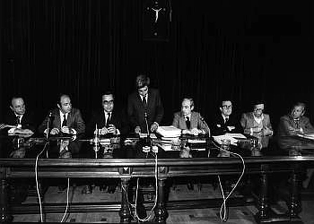Los siete ponentes de 1978 desarrollaron un trabajo impagable. (De hecho, no se les pagó). Recuerdo la visceralidad del derechista Manuel Fraga, ministro con Franco, de posiciones duras pero al cabo gran negociador, y le imagino disertando ante sus compañeros con sus conocimientos de catedrático de Derecho Constitucional, de Derecho Político y de Teoría del Estado; y discutiendo sobre fiscalidad o mercados, porque se licenció en Ciencias Políticas y Económicas. Además cursó la carrera diplomática. Hablaba inglés y había sido embajador en Londres. Publicó más de un centenar de libros, muchos de ellos sobre sus especialidades académicas. Contaba sin duda con el respeto intelectual de Gregorio Peces Barba, del PSOE, a su vez licenciado en Derecho Comparado por la universidad de Estrasburgo, catedrático de Filosofía del Derecho en la Complutense. Con ellos hablaría de igual a igual Jordi Solé Tura, comunista, profesor de Derecho Constitucional, que ya había publicado Política internacional y conflictos de clases (1974), así como decenas de artículos de fondo en la prensa española. Y no se sentiría lejano a los tres Miguel Herrero de Miñón, licenciado en Filosofía y Letras y doctorado en Derecho, que había logrado en oposición el puesto de Letrado del Consejo de Estado. Tampoco les bajaría la mirada el centrista José Pedro Pérez Llorca, diplomático de carrera, que estudió con beca en las universidades de Friburgo, Múnich y Londres. Hablaba inglés, francés y alemán, y había ganado por oposición la plaza de letrado de las Cortes. Gabriel Cisneros, de UCD, licenciado en Derecho, no necesitaba, igualmente, vivir de la política: había ingresado por oposición en el Cuerpo General Técnico de la Administración Civil del Estado. Y completaba el septeto el nacionalista Miquel Roca, profesor de Derecho Político y de Derecho Internacional en la Universidad de Barcelona y abogado.