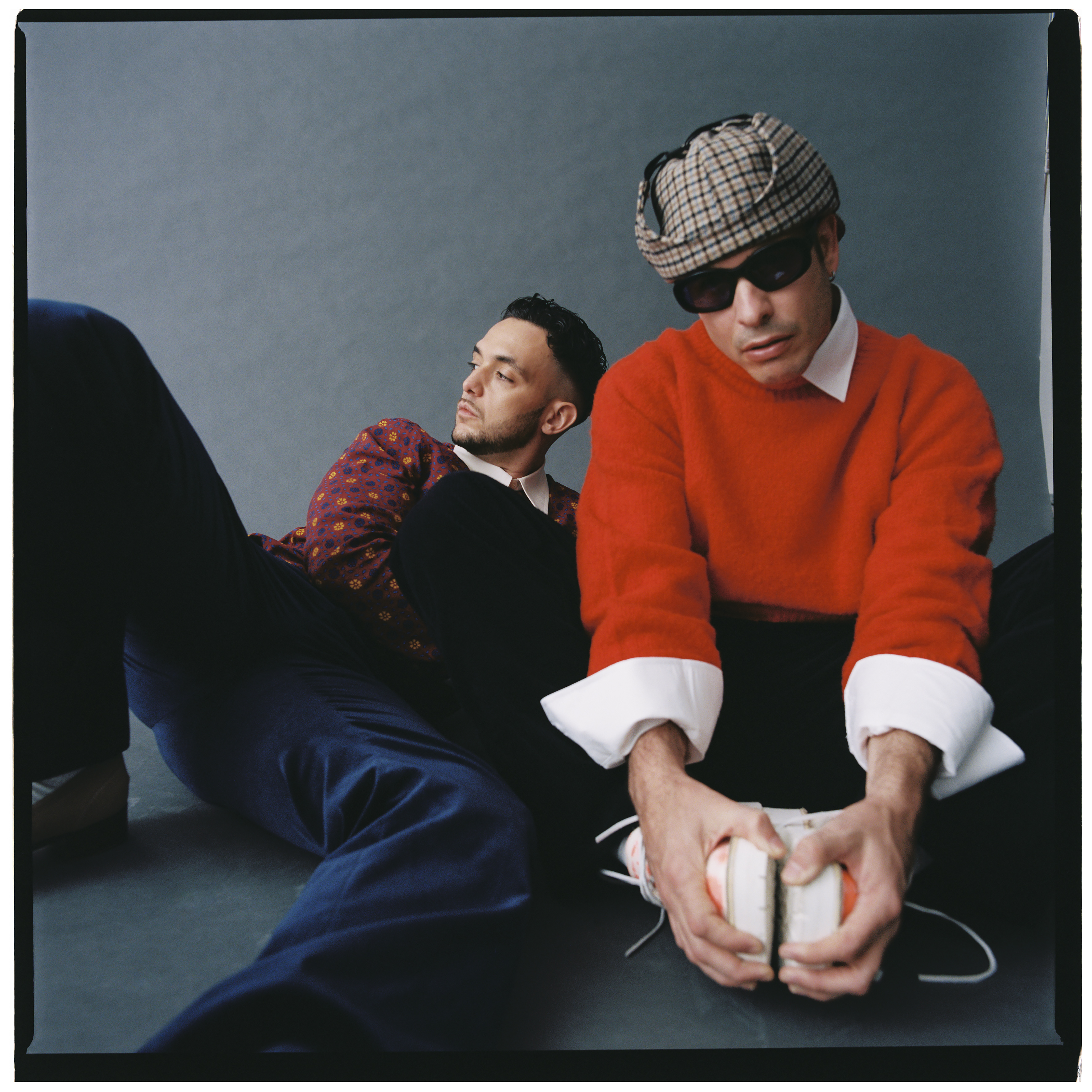 Alizzz lleva gafas de Paloma Picasso, chaleco de Wales Bonner, camisa vintage y corbata de Comme des Garçons Homme Deux. C. Tangana viste con camisa de Séfr.Pablo Zamora