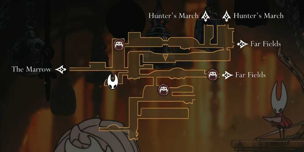 Dirígete a los muelles profundos a través de la médula o la marcha del cazador. Comenzando desde el punto de viaje rápido de Bellway, como se indica en el mapa de arriba, diríjase al oeste a la habitación con lava que cae. Tiempo para que salte para llegar al lado oeste de la habitación, luego continúe hacia arriba y hacia la derecha.