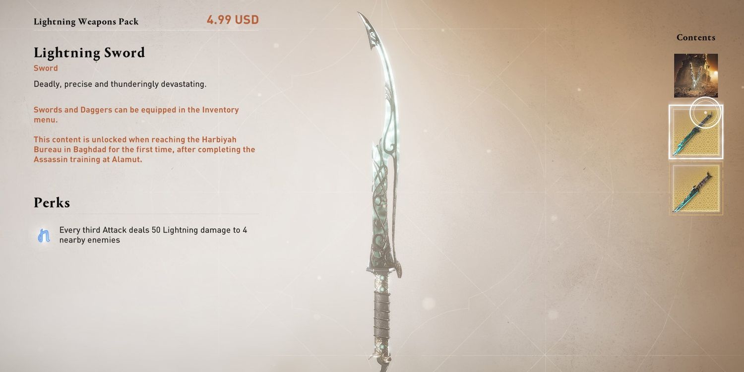 La espada del Iniciado de Alamut es esencialmente una opción para principiantes en Espejismo del Credo del Asesino, por lo que su falta de distinción no es en general sorprendente. Sus líneas limpias y su hermosa empuñadura aún la convierten en una hoja de gran apariencia, pero no se inclina hacia ningún elemento de diseño en la forma en que muchas otras espadas en Credo del asesino Espejismo hacer. Seguir con esta espada durante todo el juego no sería un flaco favor para el estilo de Basim, pero tampoco aprovecharía todo el potencial disponible.