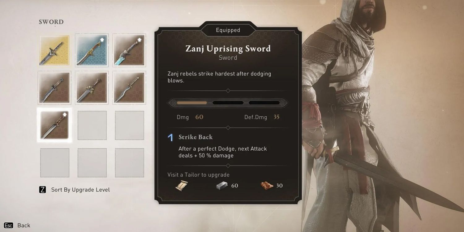 El levantamiento de Zanj es un movimiento de los oprimidos de Bagdad, por lo que tiene sentido que una espada asociada con la rebelión no sea particularmente ornamentada. Dicho esto, su utilitarismo limpio puede parecer algo deficiente en comparación con alternativas más llamativas en Espejismo del Credo del Asesino. Esta es una opción sólida para aquellos que prefieren las espadas rectas, pero es poco probable que su diseño se utilice hasta el final cuando se coloca entre la competencia.