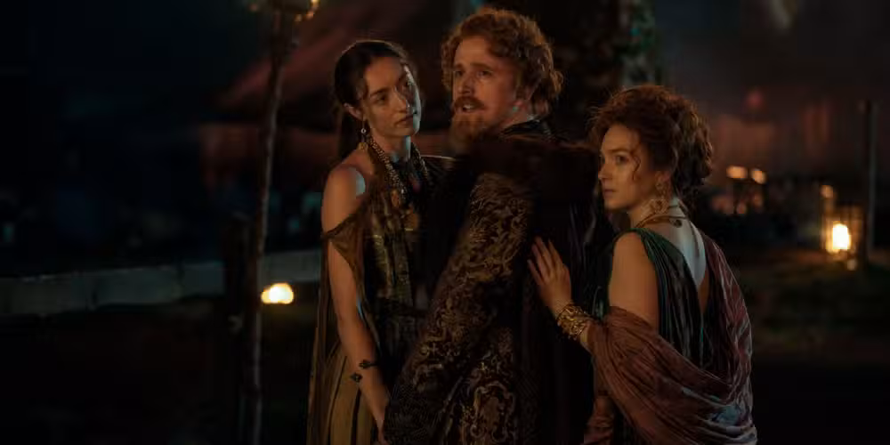 La Casa Baratheon está representada principalmente por Ser Lyonel Baratheon (Daniel Ings), la “Tormenta Laughing”, que ya se ganó su apodo en el episodio 1. Lyonel tiene el mismo apetito por las bebidas y la comida que Robert Baratheon (Mark Addy) en Game of Thronespero tiene los ojos un poco más desorbitados.