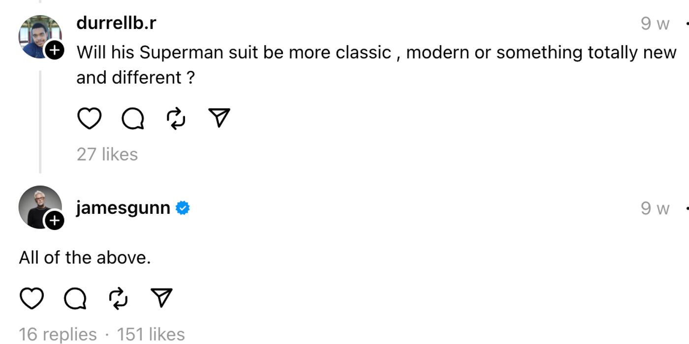 Comenzar con Superman no es sorprendente, dado que el personaje es sinónimo de la marca DC junto con Batman, quien aparecerá en su propia película en solitario en Los valientes y los Bravos algún tiempo después Superman: legado. Dado que Superman del DCU está tan cerca de la interpretación del DCEU de James Cavill, las comparaciones serán inevitables cuando haga su debut. En cuanto a cómo se verá, cuando se le pregunte Hilos si el traje de Superman será “más clásico, moderno o algo totalmente nuevo y diferente,” Gunn simplemente respondió: “Todo lo anterior.“Sin embargo, esto no es todo lo que ha revelado.