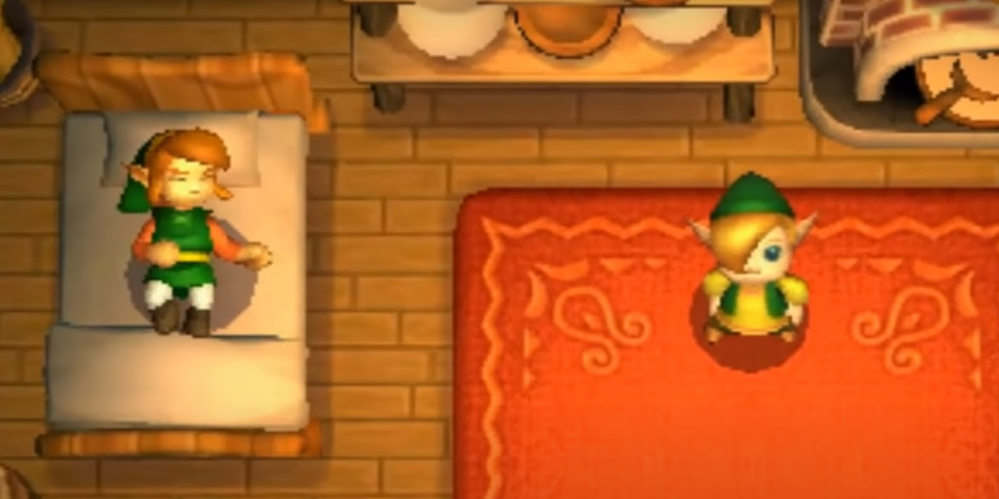 el 3ds La leyenda de Zelda: Un vínculo entre mundos es la secuela de Un vínculo al pasadoambientado en el mismo mundo varias generaciones después. Esta es la última vez que los jugadores conocen a un Link que simplemente se está quedando dormido. Después de tener una pesadilla en la que se enfrenta a un monstruo sombrío, su compañero de trabajo, Gulley, el hijo del herrero, lo encuentra durmiendo en la cama. Gulley grita “¡DESPIERTA!” para despertar al exhausto Link, que llega tarde al trabajo. Gulley le pregunta si tiene que hacer esto todas las mañanas, lo que implica que Link siempre llega tarde a este universo.