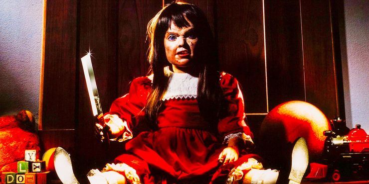 de stuart gordon muñecas llegó justo un año antes Juego de niños pero ni siquiera se acercó a la cantidad de reconocimiento que merece. La película sigue a Judy (Carrie Lorraine), una niña de siete años. Ella, su abusivo padre David (Ian Patrick Williams) y su malvada madrastra Rosemary (Carolyn Purdy-Gordon) se detienen en una mansión espeluznante debido a una tormenta eléctrica. Los dueños de la casa son una pareja anciana y bastante aterradora, Gabe y Hilary (Guy Wolfe, Hilary Mason), quienes los dejaron entrar a su casa. Más tarde entra en la casa un hombre inocente con aspecto de niño llamado Ralph (Stephen Lee) y dos autostopistas (Bunty Bailey, Cassie Stuart). Tan pronto como ingresan a la casa, encuentran miles de muñecas (que se revelan como muñecas asesinas), que van desde muñecas adorables hasta muñecas bastante aterradoras. Pronto se revela que la pareja son fabricantes de marionetas que matan a todos los visitantes “malvados”. Luego ponen sus almas en muñecos por la eternidad como una forma de castigo. Por supuesto, hacen todo esto por el bienestar de los niños. A diferencia de Juego de niños, muñecas tienen mucho simbolismo. Los padres de Judy son abusivos y terribles con Judy, y es por eso que sus almas se ven obligadas a estar en los cuerpos de las muñecas por el resto de la eternidad. Los únicos que sobreviven a los asesinatos son Judy y Ralph, ya que son los inocentes. Aparte del simbolismo, la atmósfera de la película es fabulosa: colores intensos, escaleras chirriantes y la canción de cuna bastante escalofriante que suena en todo momento. muñecas tiene una sensación espeluznante desde el principio, con algunas frases graciosas y, por supuesto, algunas muertes sangrientas. Es una visita obligada para cualquier película de juguete asesino amante.