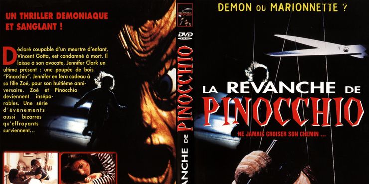 Kevin S. Tenney La venganza de Pinocho es un thriller psicológico de 1996 exclusivo de la fórmula estándar de películas de juguetes asesinos, ya que la muñeca apenas se muestra en acción. La abogada Jennifer Garrick (Rosalind Allen) defiende a Vincent Gotto (Lewis Van Bergen), un asesino de niños convicto. Después de la ejecución de Gotto, el compañero de trabajo de Garrick tiene la única evidencia que queda: un títere de aspecto espeluznante que tiene un parecido sorprendente con Pinocho. Garrick lleva la muñeca a casa para encontrar pistas, pero su hija Zoe (Brittany Alyse Smith) confunde la marioneta con un regalo. Similar a Actividad Paranormal 7, Zoe se encariña con la muñeca. Poco después de que la marioneta llega a la casa, el peligro rodea a Zoe: su niñera es asesinada sin piedad, su matón de la escuela primaria es empujado frente al autobús escolar y el novio de Garrick cae por las escaleras.