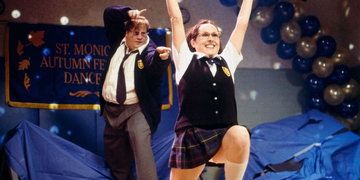 Otro ejemplo de un popular SNL El personaje de parodia que parece un poco extraño en retrospectiva es Mary Katherine Gallagher, de Molly Shannon, una incómoda colegiala católica con la desagradable costumbre de meterse los dedos en las axilas y luego olerlas. Mientras Superestrella rompió incluso en la taquilla, fue nuevamente destrozada por los críticos, ya que la mayoría Sábado noche en directo han acabado siendo películas basadas en parodias.