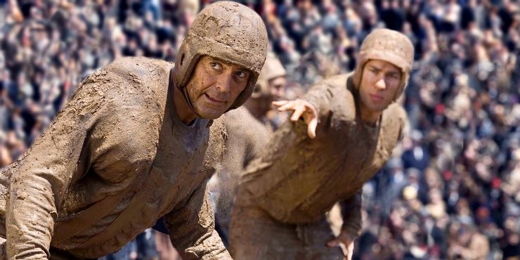 cabezas de cuero es una película de comedia deportiva protagonizada por Clooney como el futbolista profesional Jimmy “Dodge” Connelly. En 1925, el equipo de Dodge ha perdido sus patrocinios y la liga está al borde del colapso. En un último esfuerzo por llamar la atención sobre el deporte, Dodge recluta al héroe de guerra e ícono nacional Carter Rutherford para que juegue en su equipo. Clooney ha dicho que la historia se basó libremente en el fichaje de Harold “Red” Grange por los Chicago Bears en 1925, un movimiento que ayudó a legitimar la NFL. El tono cómico que identifica a Clooney se utiliza mejor en cabezas de cuero, dando vida a un guión decepcionante.