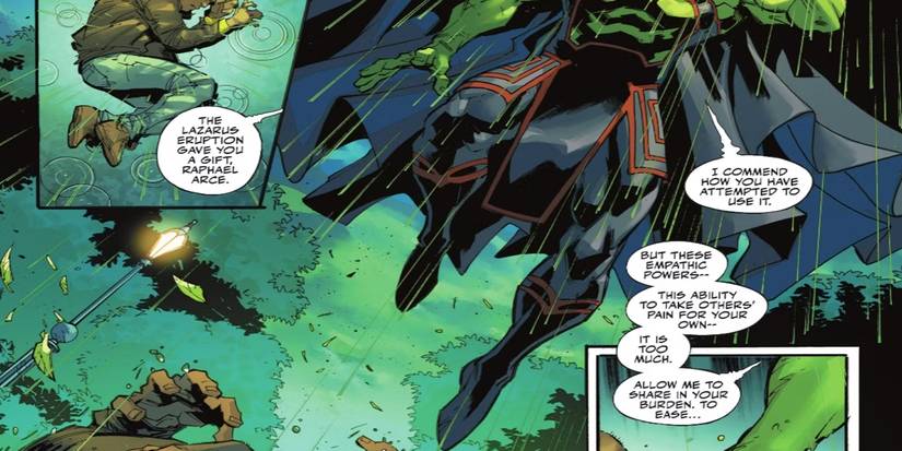 El poder de Bloodwynd para absorber el dolor de los demás es una de sus mayores habilidades. No importa el trauma por el que haya pasado alguien, mental o físico, Bloodwynd puede asumir ese dolor. Antes de que Bloodwynd, la versión del personaje de Raphael Arce, obtuviera la mayoría de sus poderes, este fue el primer poder otorgado por las lluvias de Lázaro. Lo usó para visitar un hospital y aliviar el dolor de cada paciente que sufría.. Fue un acto verdaderamente noble y heroico, y aunque Superman ha hecho algo similar en el pasado, no pudo hacerlo solo como puede hacerlo Bloodwynd.