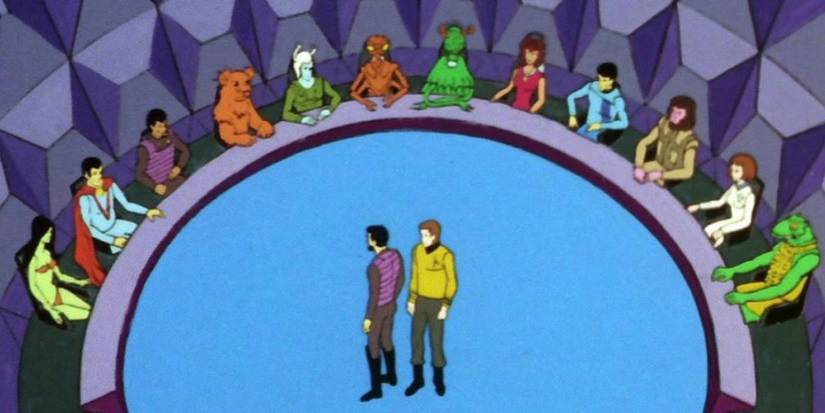 Hasta Star Trek: Cubiertas inferiores estrenada en 2020, Star Trek: La serie animada fue el único animado Star Trek serie, que duró 2 temporadas en 1973 y 1974. La ESO El episodio “La trampa del tiempo” sigue siendo una de las historias más emblemáticas de la serie, en parte gracias al Consejo Elíseo. Como gobernantes del universo alternativo Elysia, el Consejo Elíseo mantiene la paz en todo su universo al involucrar a 123 especies en sus deliberaciones. Este consejo incluye a un Gorn que trabaja pacíficamente con las otras especies para mantener la armonía en su universo. presagiando la futura paz entre los gorn y los humanos en la línea de tiempo canon.
