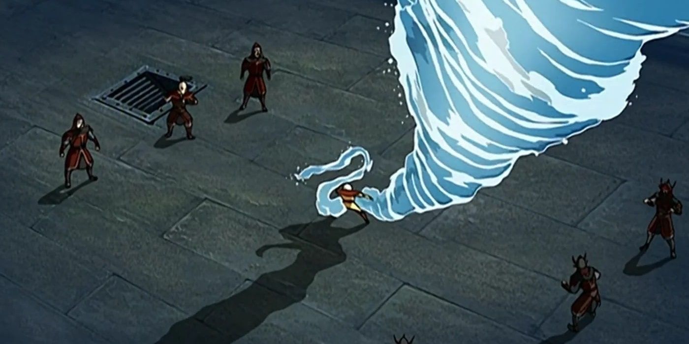 “/> Uno de los casos más breves en los que Aang ingresa al Estado Avatar ocurre cuando Aang y sus amigos vuelan a través de una tormenta masiva en Appa, y el viento y los relámpagos los arrojan al mar. Aang activa el Estado Avatar por su instinto de sobrevivir y salvar a sus amigos., doblando una enorme bola de agua y aire a su alrededor, para que puedan volar libres de la tormenta. Si este momento se incluye en una nueva versión de acción real, podría ser otra hermosa escena. Sin embargo, dado que no es una secuencia absolutamente necesaria, es posible que sea eliminada de la adaptación de Netflix.