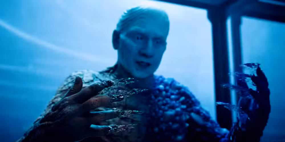 Aunque el metamorpho no puede describirse como un villano en el momento de SuperhombreEl final, vale la pena mencionar para su presentación en la película. Metamorpho sirve como el carcelero de Superman, manteniendo a este último encarcelado y debilitado Al usar sus poderes, que le permiten transmutar su cuerpo en cualquier compuesto elemental conocido, para crear kriptonita.
