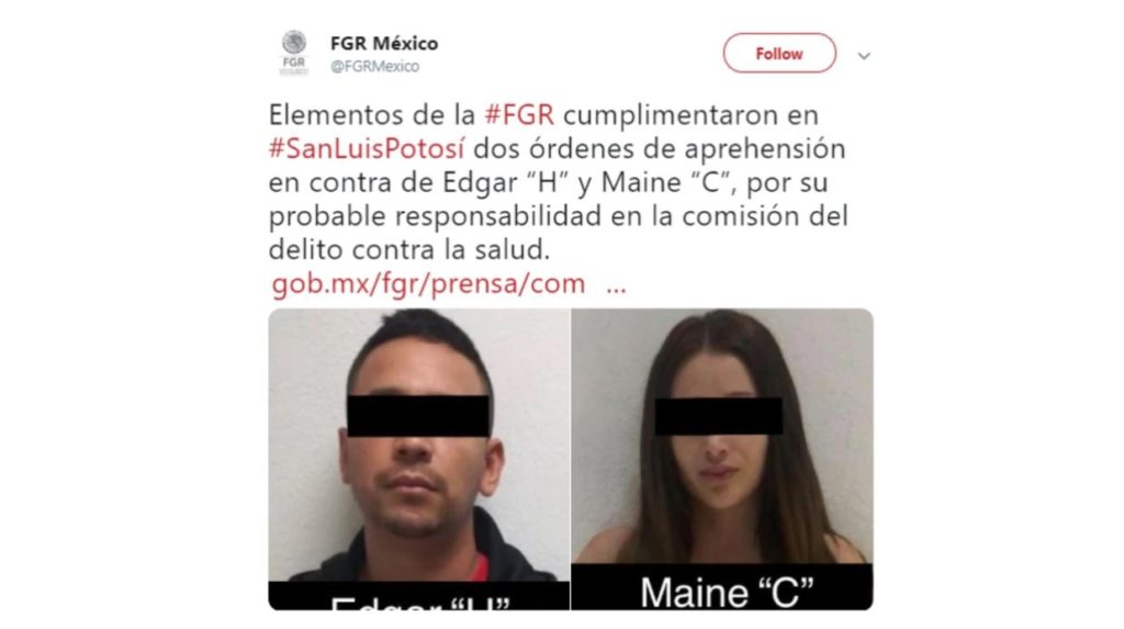 Cabe destacar que elementos de la Fiscalía General de la República (FGR) cumplimentaron en San Luis Potosí las dos órdenes de aprehensión de ambos sujetos, por su probable responsabilidad en la comisión del delito de contra la salud.