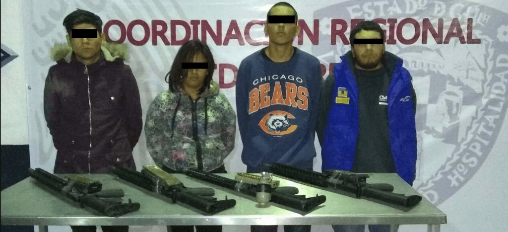 Luego del hallazgo del armamento, se detuvo a quienes se identificaron como Dámaris “N”, Alán Raúl “N”, Bryan Alexis “N” y Ángel Jesús “N”, quienes indicaron ser integrantes del grupo delictivo “La Línea”, el cual ha realizado operaciones ilícitas y de violencia en las ciudades de Juárez y Chihuahua.