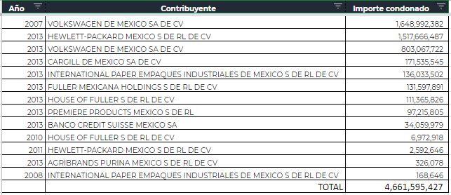 Son tres las compañías mexicanas que forman parte de la lista de condonaciones recientemente revelada por Fundar, aprobadas durante el sexenio de Peña Nieto.