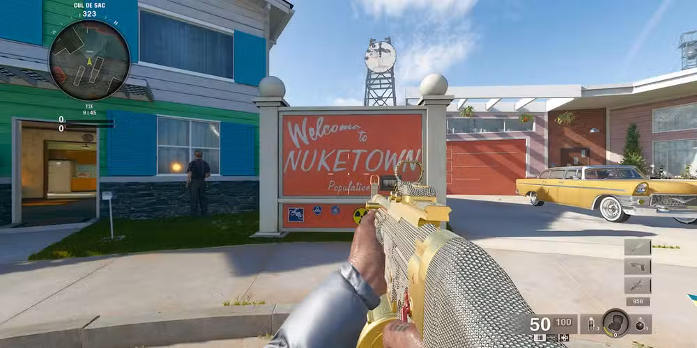Después de su debut original en la primera Operaciones encubiertas Desde su entrada en 2010, Nuketown se ha convertido en un mapa básico en las contribuciones de Treyarch a la serie Call of Duty. Ubicado en Nevada, el mapa presenta un enfoque sencillo, casi en espejo, con dos grandes casas suburbanas y un punto central marcado por algunos vehículos más grandes.