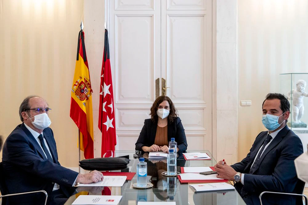 El PP de Madrid considera que Ignacio Aguado, líder regional de Cs y su socio gubernamental, ha reaccionado con tibieza a la oferta lanzada por el PSOE para hacerle presidente de la Comunidad de Madrid a cambio de sumarse a una moción de censura en contra de Isabel Díaz Ayuso. Aunque el vicepresidente regional mostró este miércoles con toda contundencia su negativa a participar en esa operación en plena pandemia, la formación conservadora vivió con inquietud que, a su juicio, no cerrara la puerta a hacerlo en el futuro. En consecuencia, el entorno de Díaz Ayuso no descarta el adelanto electoral como último recurso, aunque subraya su deseo de mantener la actual situación y centrar todos los esfuerzos en afrontar la crisis social, sanitaria y económica que ha provocado el coronavirus.“Están hablando de una moción de censura. Si la presentan, no se pueden convocar elecciones [lo impide el Estatuto de Autonomía de la Comunidad de Madrid]. La única opción ante eso es que el pueblo decida [convocando los comicios antes]. Y eso depende de cómo vayan las cosas”, analizó una fuente de la confianza de Díaz Ayuso, resumiendo la inquietud que generó ayer en parte del PP que Aguado no rechazara con la contundencia de otras veces los cantos de sirena del PSOE. “Nosotros estamos a lo que pase, sin ninguna intención de variar el rumbo. Pero…”Un segundo interlocutor también mostró su sorpresa porque Aguado no hubiera cerrado de golpe la puerta a una moción de censura en el futuro (“Creo que ya he respondido con toda claridad y no me gustaría dedicar ni un segundo más a un asunto que no considero prioritario”, dijo).No obstante, en el PP hay consenso alrededor del peligro que supone convocar un adelanto electoral. Sería un último recurso indeseable, analizan. Nada garantiza que la aritmética parlamentaria que resultara de unos nuevos comicios liberara a la formación conservadora de la necesidad de volver a pactar con Cs y Vox para mantener el poder. Y convocar a las urnas a los ciudadanos en medio de una pandemia sin precedentes causa vértigo en la sede popular de Génova, donde el PP nacional y regional se cruzan cada día por los pasillos.Todo, por lo tanto, está en manos de Cs, al que todos miran de reojo. El PP le pide lealtad y contundencia en cercenar cualquier rumor. El PSOE, que da por imposible que se sume a la operación en plena pandemia, intenta presionarle para desgastarle electoralmente. Y Vox, que ve una posibilidad de crecimiento a costa de la formación de Aguado, hace todo lo que puede por desgastar a su partido: por eso pide la destitución del consejero de Políticas Sociales, Alberto Reyero, y que se reduzcan consejerías a cambio de dar sus decisivos votos para aprobar los Presupuestos de 2021.Ese será el punto clave que decidirá la supervivencia de la legislatura. Sin unas cuentas actualizadas para afrontar los efectos de la pandemia, y sin haber sido capaz aún de aprobar una sola ley, la tentación del adelanto electoral crecerá para el PP. En cambio, sacar adelante el proyecto cimentaría la mayoría de la investidura de Díaz Ayuso (PP, Cs y Vox) y rompería de cuajo el discurso con el que la izquierda intenta atraer a Aguado hacia la moción de censura.“Yo no estoy preocupado”, dijo un político con predicamento en el PP regional y nacional. “El PSOE lleva tiempo agitando esa amenaza y lo único que busca es crear desconfianza dentro del gobierno de coalición”, opinó.“Hay tranquilidad”, abundó otro representante con responsabilidades en múltiples niveles del partido.Una calma tensa: el PP mira cada movimiento de Cs, y Cs cada movimiento del PP. No pasa un día sin que les rodeen los rumores del adelanto electoral (que, en teoría, beneficiaría a Díaz Ayuso) o la moción de censura (de Cs con la izquierda de PSOE, Más Madrid y Podemos).Fe de erroresEn una primera versión de este artículo se decía, equivocadamente, que lo que impide convocar elecciones cuando ya se ha presentado una moción de censura es el reglamento de la Asamblea. Esa previsión está recogida en el Estatuto de Autonomía de la Comunidad de Madrid